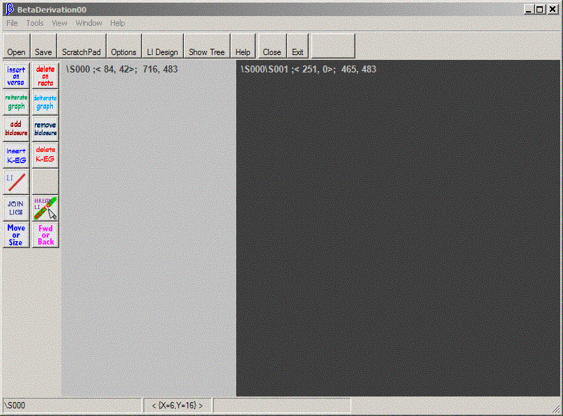 It is with this in mind that I enter into a study of the Beta System of Existential Graphs employing contemporary programming tools. My work is being conducted within Microsoft Visual Studio NET 2003, specifically, in Visual Basic; however, there is no reason why it could not be done in other programming systems of similar power. I will comment on details of the work as we progress.