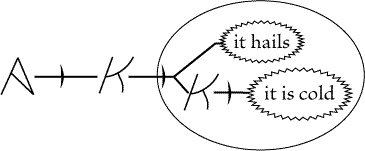 asserts, of course, that if it hails, it is cold de inesse. Now a graph asserting that this graph is scribed on the sheet of assertion,